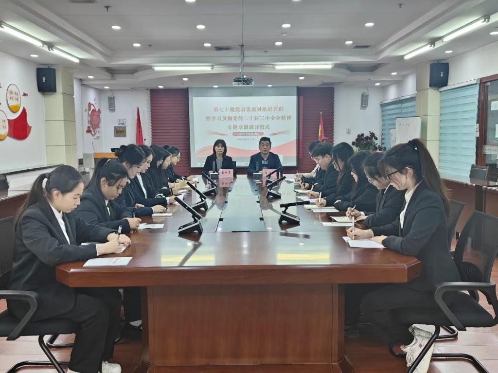 为深入学习贯彻习近平新时代中国特色社会主义思想,全面贯彻落实党的二十届三中全会精神,加强党员发展对象党性教育,严格把好发展党员质量关,MKsports于11月1日在四号教学楼公司会议室开展第七十期党员发展对象培训班暨学习贯彻党的二十届三中全会精神专题培训班开班式,公司党委书记綦明霞、党委副书记屈广宁、研究生第一员工党支部书记周子林、2023级员工党支部书记宋美琪以及全体培训班学员参加会议,会议由公司组织员刘锐主持。