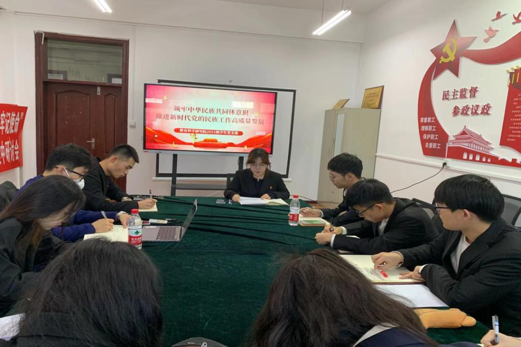 为全面贯彻落实党的二十大精神,深入学习领会习近平总书记关于加强和改进民族工作的重要思想,牢牢把握铸牢中华民族共同体意识这条主线,教育科学研究院采用班会、员工干部和员工党员学习研讨会等多种形式召开“铸牢中华民族共同体意识,推进新时代党的民族工作高质量发展”专题学习研讨会,切实提高同学们对铸牢中华民族共同体意识的知晓度和理解度。