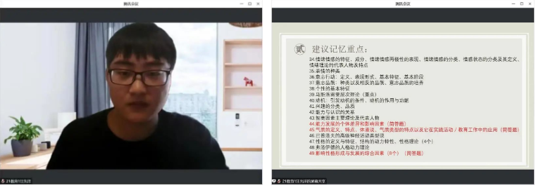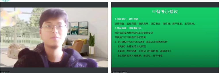 接着,由刘锦琪同学对2021级应用心理学全体同学进行辅导,针对不同科目的重难点及考试时间,她提出了不同的复习体系,并带领同学们对部分课程重点进行知识脉络梳理,建议大家以老师划定的重点为主要复习内容。同时,刘锦琪同学向大家分享了一些考试小技巧,建议大家趁早开始复习,把握复习时间。最后,有针对性地为大家答疑解惑。