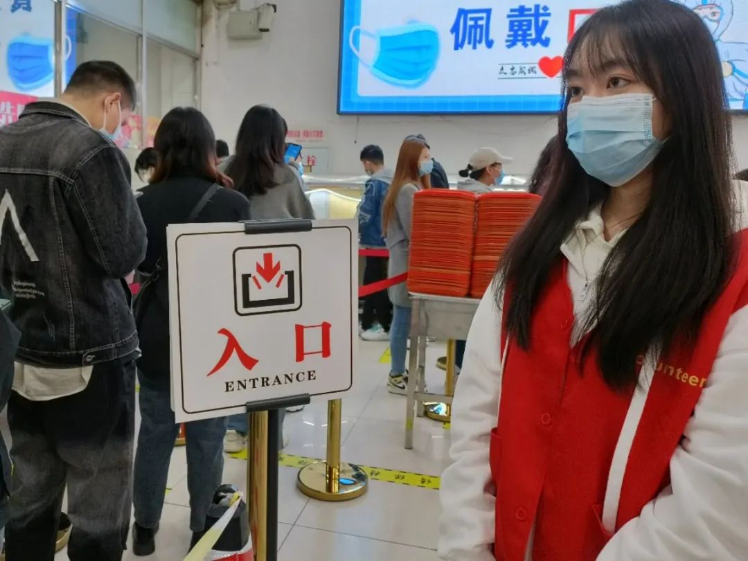 公司志愿者积极参与到此次活动中,筑牢校园疫情防控屏障,共同维护校园安全防线。志愿者在做好自身防护的前提下,积极热情地为大家服务,维持疫情期间食堂的就餐秩序。志愿者们坚守岗位,做好人员疏散工作,并提醒同学们佩戴口罩。食堂入口处,志愿者们检查员工是否佩戴口罩,是否扫码测温。食堂内,志愿者们耐心引导购餐的同学保持一米间隔有序排队,避免扎堆聚集。在活动过程中同学们团结协作、充满干劲,圆满完成任务。