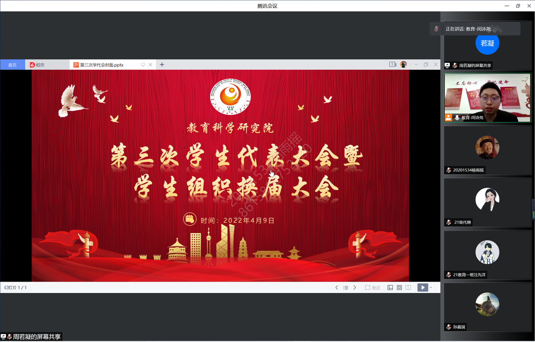 为深入贯彻习近平总书记关于青年工作的重要思想,进一步落实公司关于深化员工组织改革的要求,加强公司员工管理工作及公司员工组织建设,支持和引导员工会更好地服务青年员工成长成才,从而全面提高公司员工组织干部的综合能力,教育科学研究院于2022年4月9日上午9时,通过腾讯会议平台召开第三届员工代表大会暨第十九届员工会、第五届青年志愿者协会主席团换届选举大会。