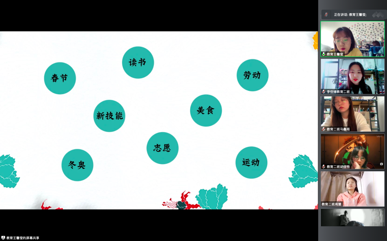 会议伊始,王老师向参会同学介绍本次思想动态调研的重要意义,希望同学们结合自身实际,围绕时政热点看法、疫情与返校期间的心理状况、个人展望等方面发表所感所想。同时王老师对寒假进行总结,假期虽受到疫情的影响,但同学们的假期生活多姿多彩。通过日常分享,看到同学们寒假期间掌握了新的技能;无私奉献进行社区志愿、劳动;坚持读书打卡、运动打卡等等。王老师表示很高兴能看到同学们带着新收获以崭新的面貌迎接新学期生活,希望同学们再接再厉,不要辜负自己的期望。
