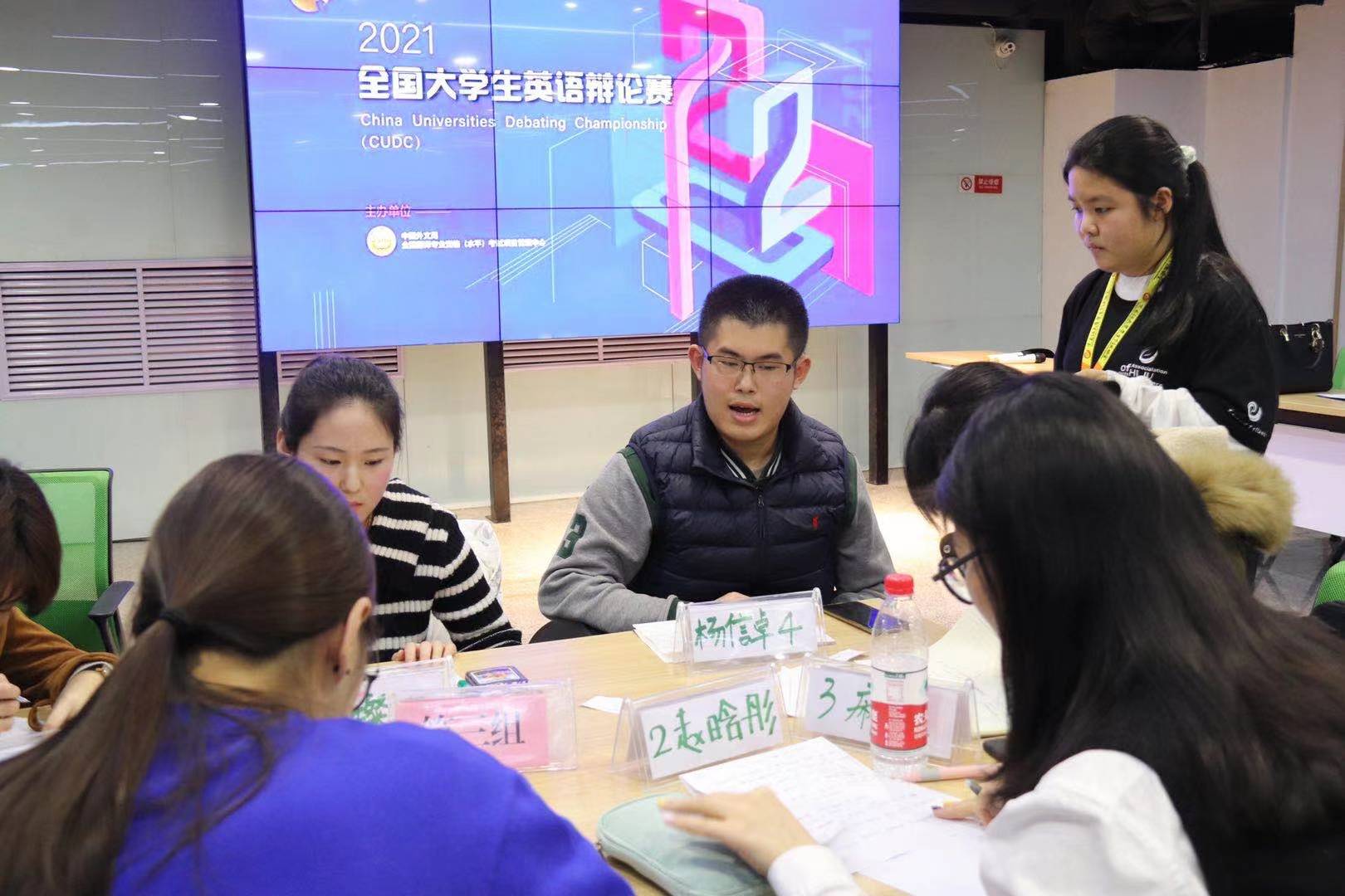 本次复赛以无领导小组讨论的形式开展,为了更加全面的考核选手开展了两轮无领导小组讨论,选手全程以英语进行交流,。赛前通过抽选议题的形式确定了6组选手的分组,议题包含了时事政治、热点话题等诸多领域,每轮讨论之前选手只有15分钟的临场准备时间。